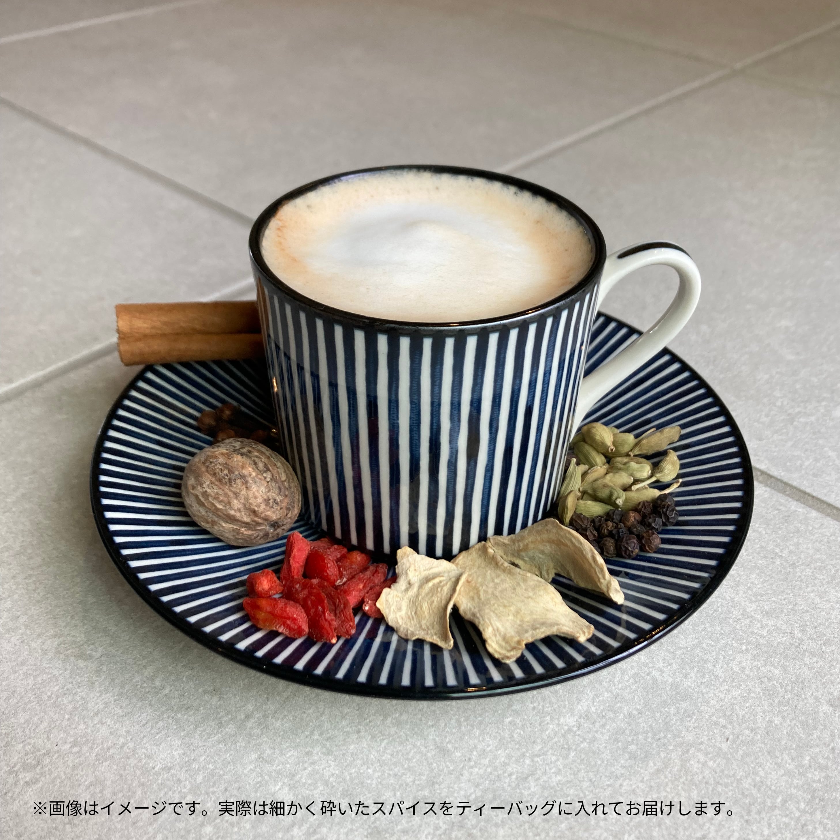 アッサムCTC、シナモン、ジンジャー、クコの実、カルダモン、クローブ、ブラックペッパー、ナツメグ